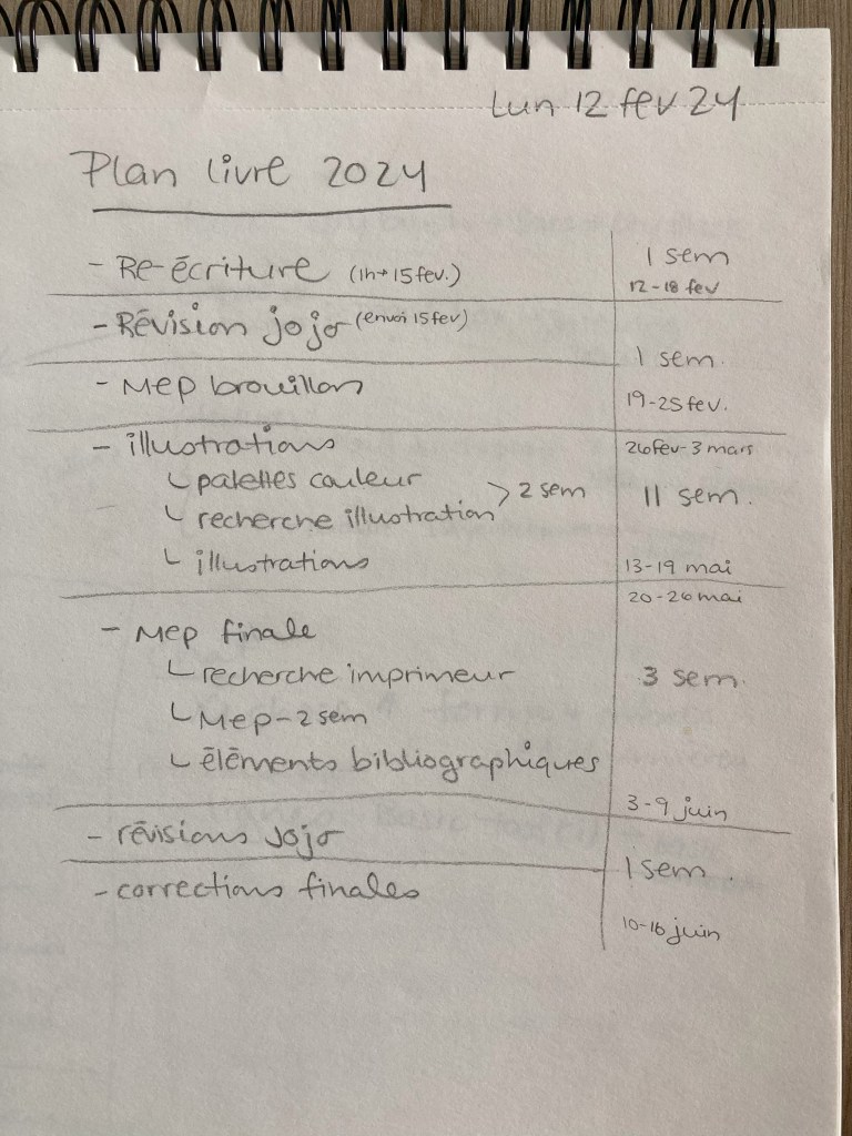 Alors comment je fais pour m’organiser et penser à toutes les étapes pour la création de mon livre? Je fais des listes!!!