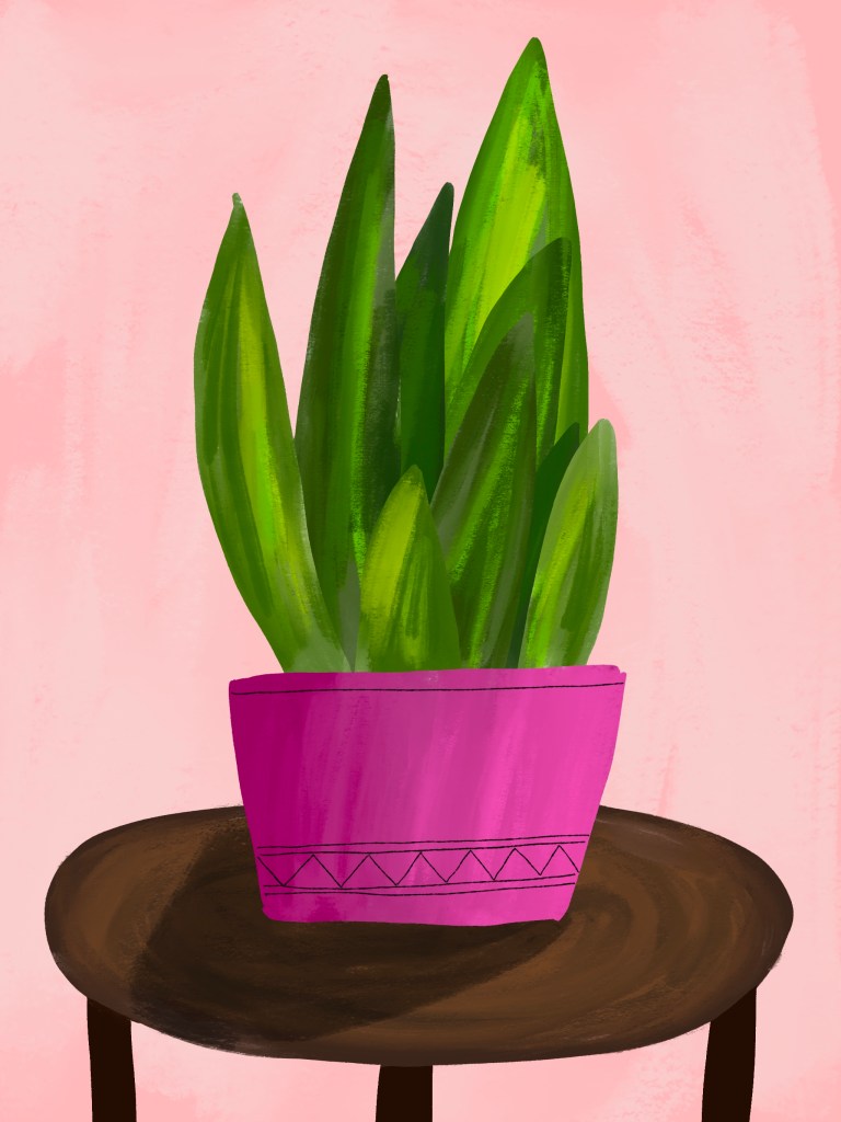 Puis un soir, je suis dans une salle d’attente pendant que ma fille est à un rendez-vous. J’avais envie de dessiner une plante sur une table, quelque chose de bien simple. Pas de plan, pas de contrainte : du dessin juste pour m’amuser. En même temps, je teste différents pinceaux dans l’application du iPad. Je tombe en amour avec le style de mon dessin, qui est assez différent de ce que je fais pour le livre.