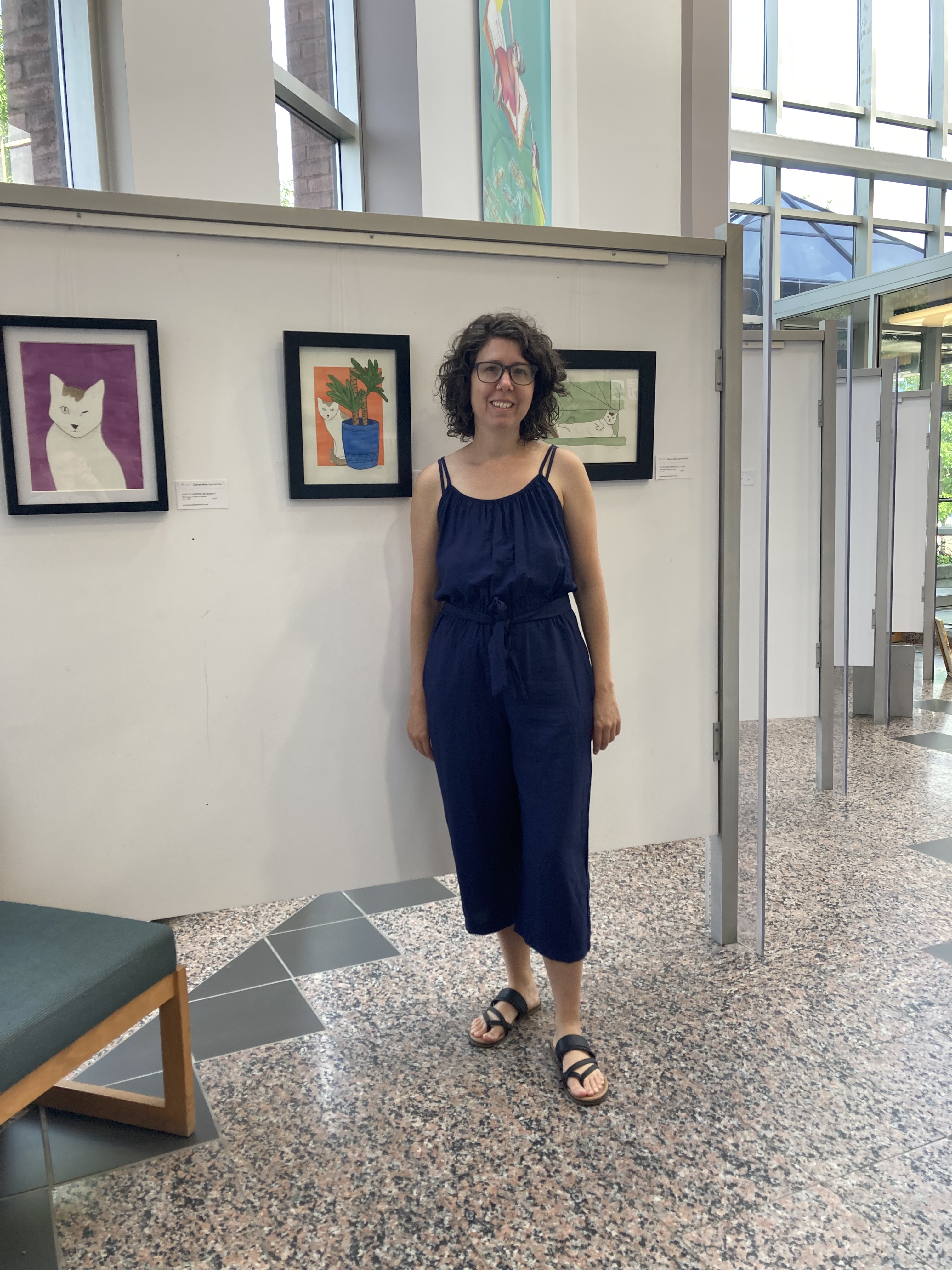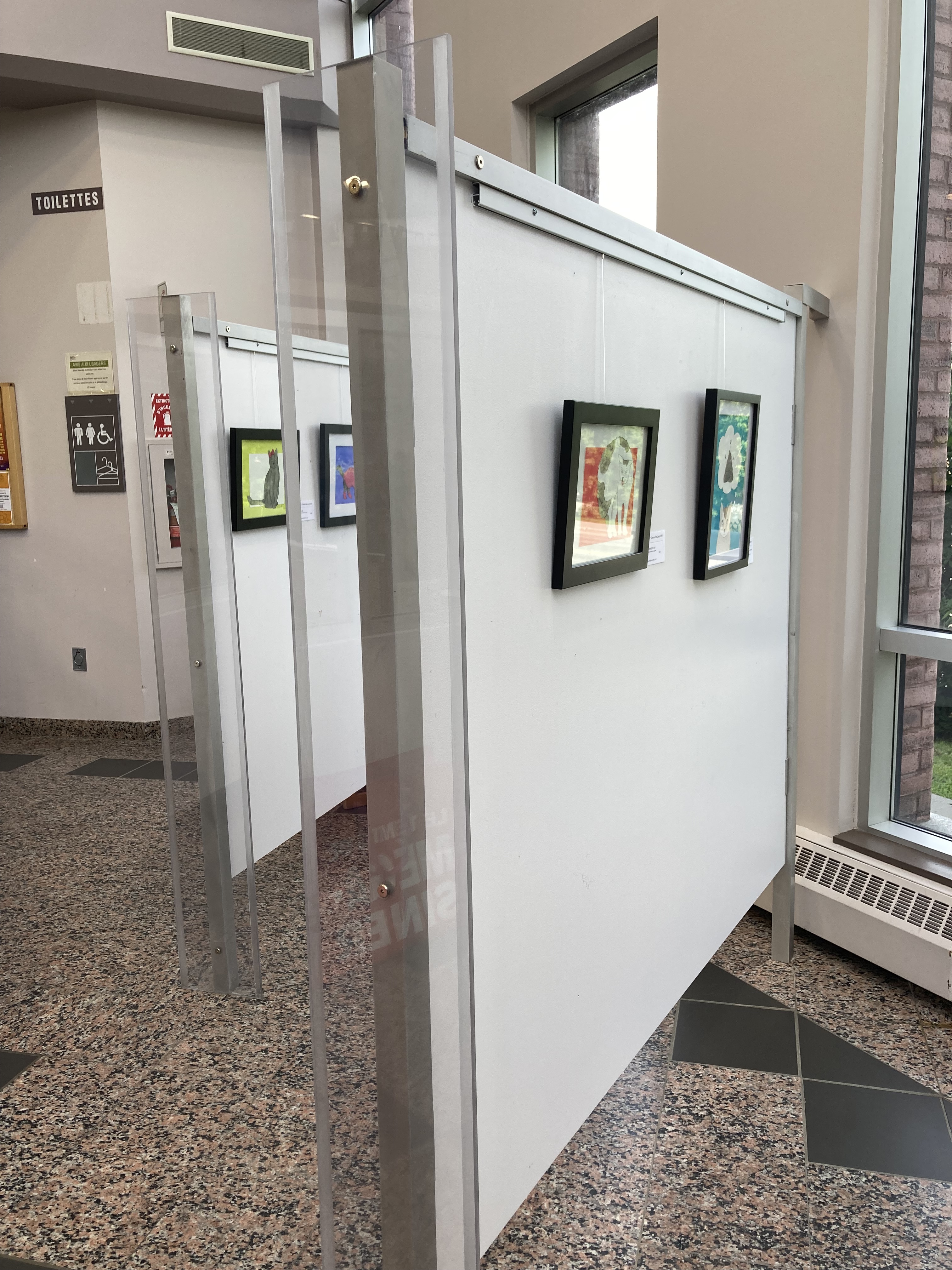 Exposition des chats inspirés de mes histoires à la bibliothèque municipale de Sherbrooke.