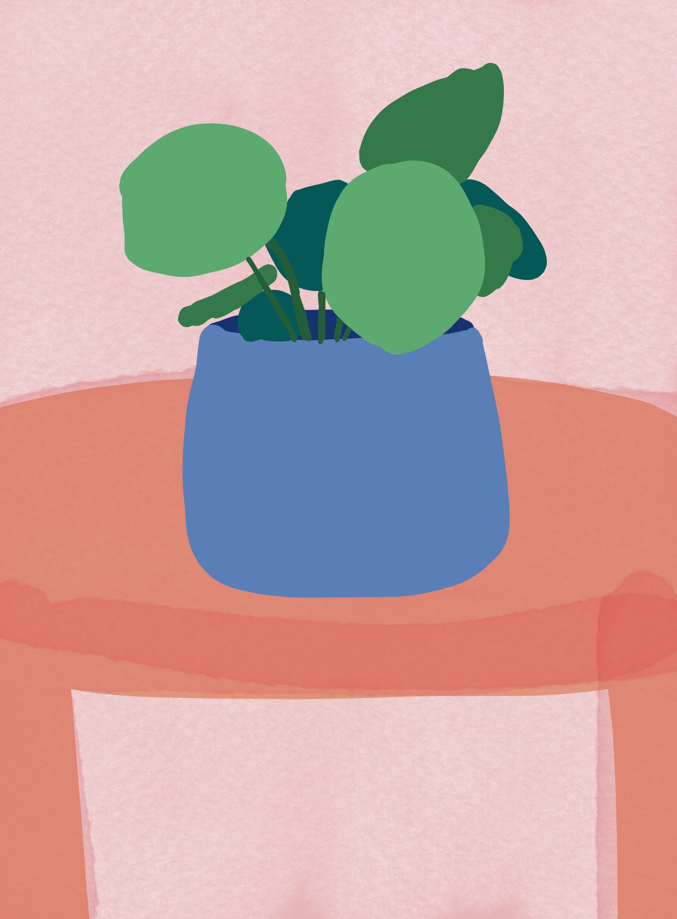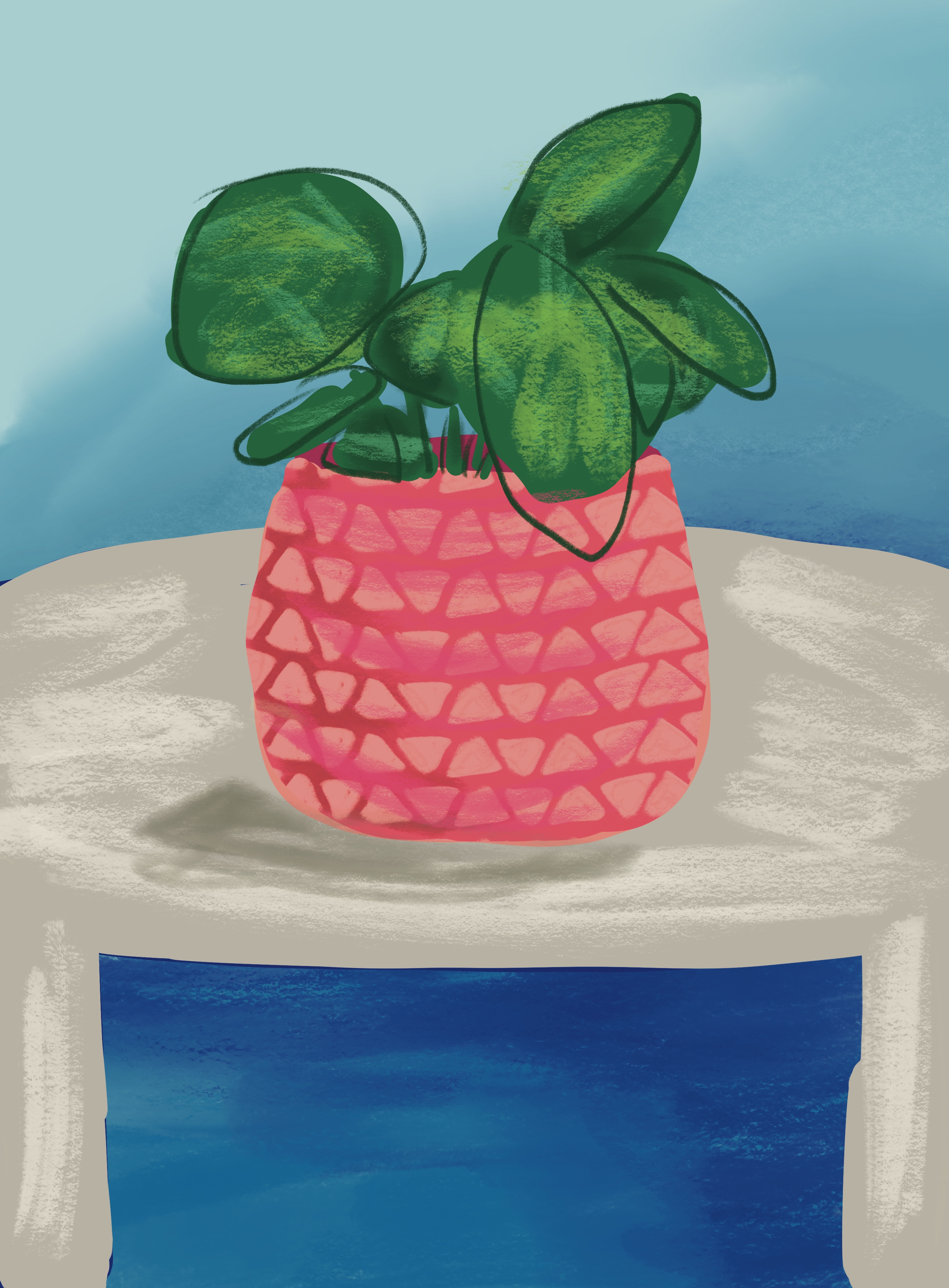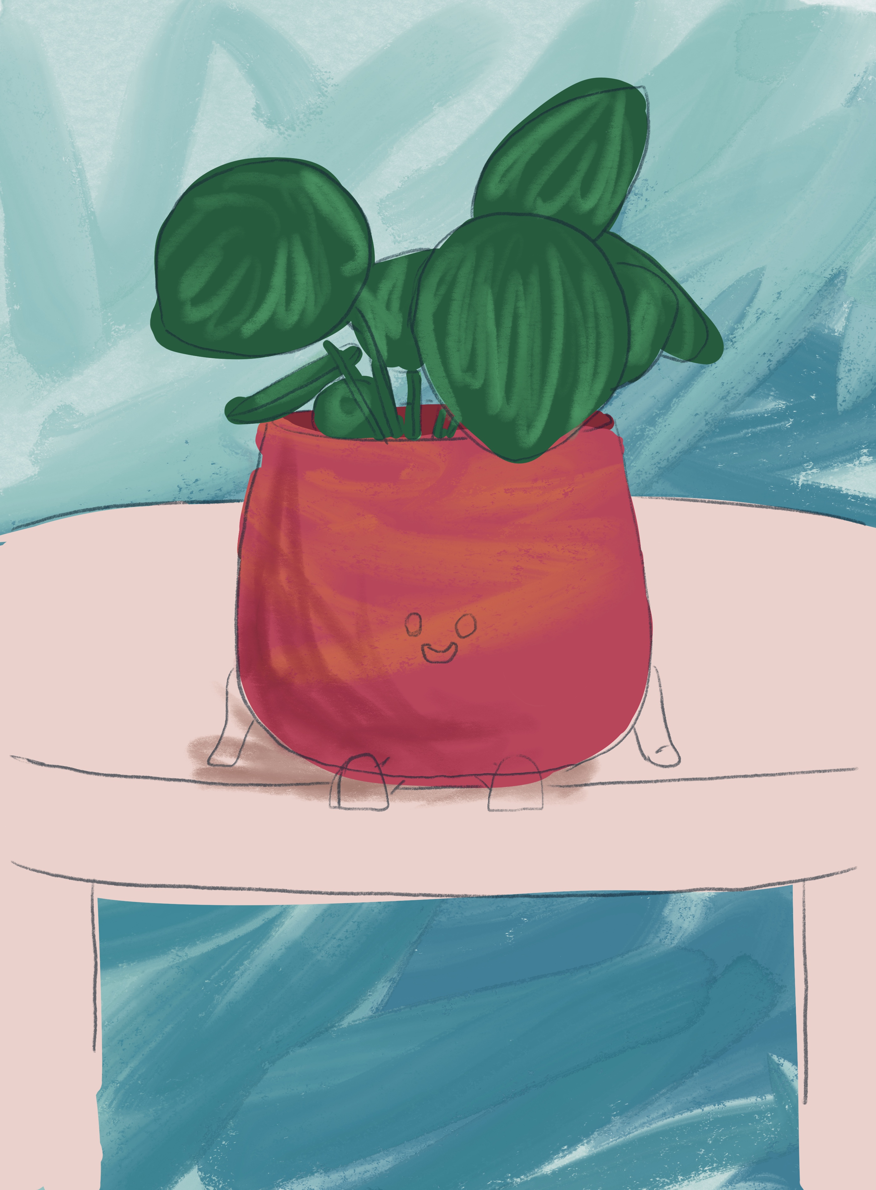 Ensuite, pour le style des illustrations, j’ai commencé avec un élément qui sera présent dans mes illustrations. Ça peut être n’importe quoi! Pour ce cas-ci, j’ai choisi une plante. Ensuite, je l’ai dessiné plusieurs fois, avec des styles et des couleurs différentes pour pouvoir les comparer.