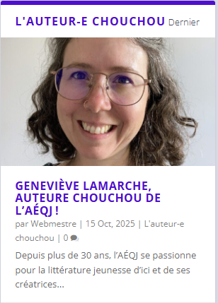 Je suis très heureuse d’avoir été invitée par l’Association des écrivains québécois pour la jeunesse (AÉQJ) à partager mon parcours et mes inspirations dans leur série « auteur·e chouchou ».